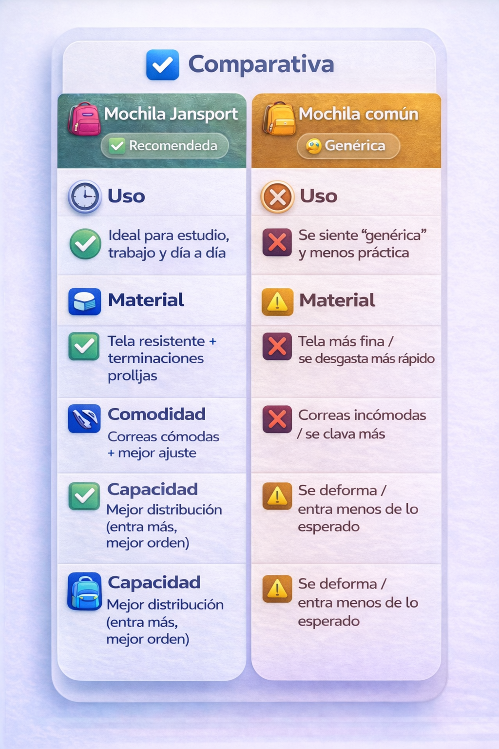 Llevate el combo más práctico y rendidor: dos mochilas JanSport originales para compartir o alternar, más un cuaderno Éxito ideal para arrancar el año con todo.